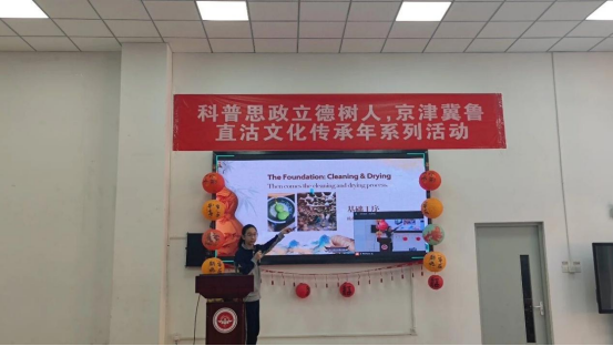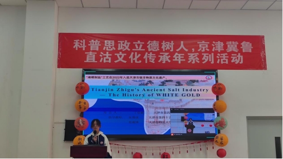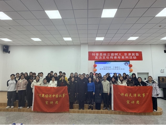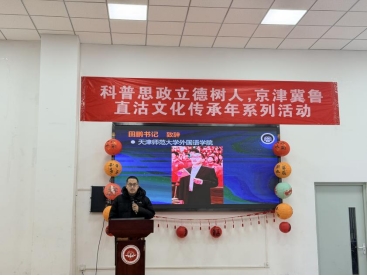 1月8日,天津市河东区教师发展中心联合天津师范大学外国语学院、天津商业大学法学院、天津市河东区文旅局等单位主办的“科普思政立德树人 京津冀鲁直沽文化传承年”系列活动在河东区第二十八中学成功举办。北京丰台、山东德州、河北定州教研团队线上参与活动。学院党委书记田鹏,党委副书记、纪委书记(兼)苏笛,学院团委书记、学生工作办公室主任宋倩,团委副书记、学生工作办公室副主任陈乾坤参与活动,学院40余名学生现场观摩学习。